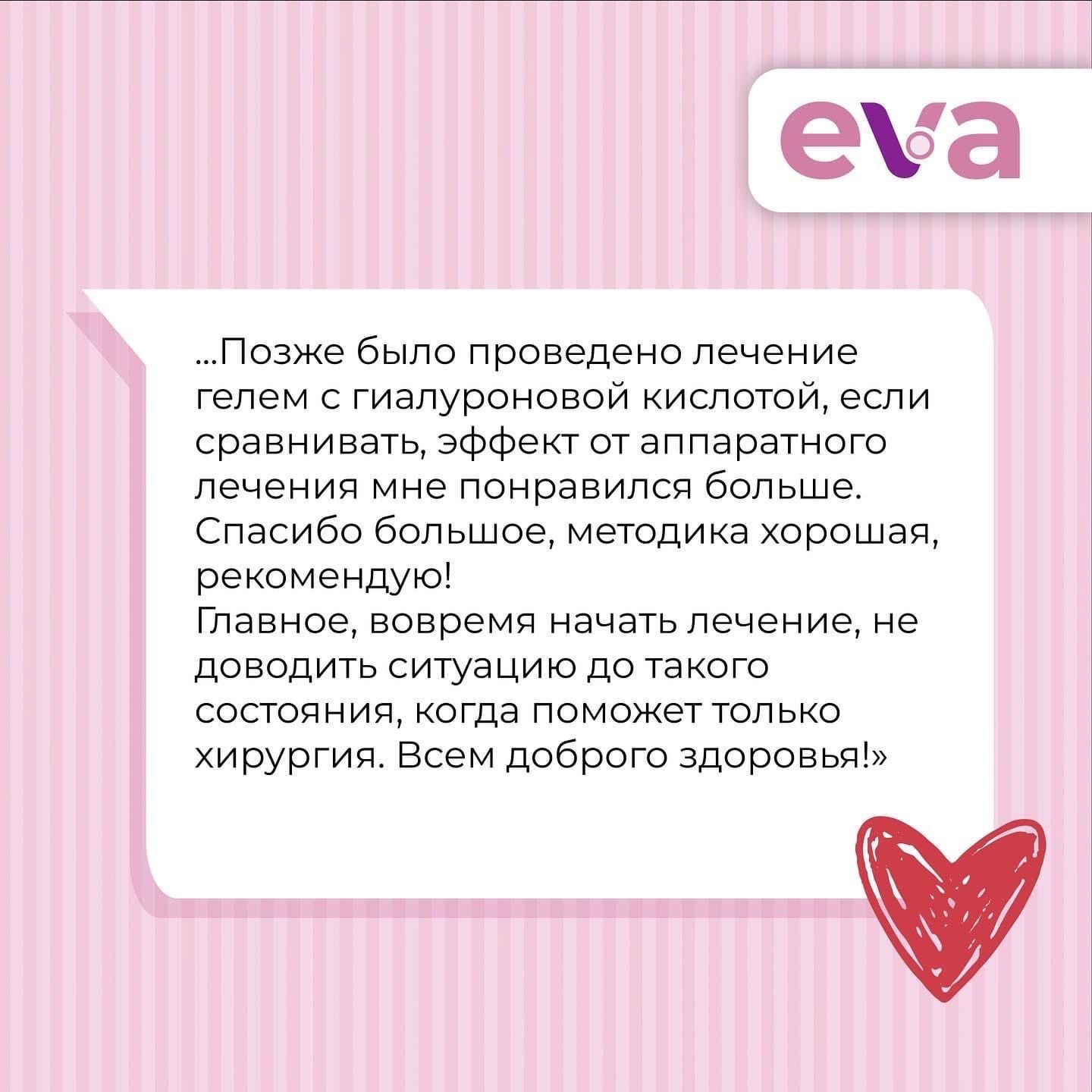 "Мой профессиональный принцип подхода к пациенткам состоит в том, что каждая женщина - индивидуальна. После процедур на аппарате EVA моим пациенткам удаётся забыть о таких ситуациях, когда после родов, гормональных изменений или с возрастом они теряют ощущения чувствительности при интимной близости, испытывают дискомфорт от того, что не могут подпрыгнуть на фитнесе из-за недержания мочи. Многие страдают от циститов после полового контакта – что вызывает огромное количество комплексов.